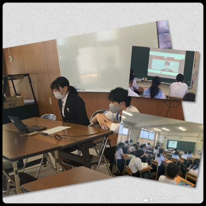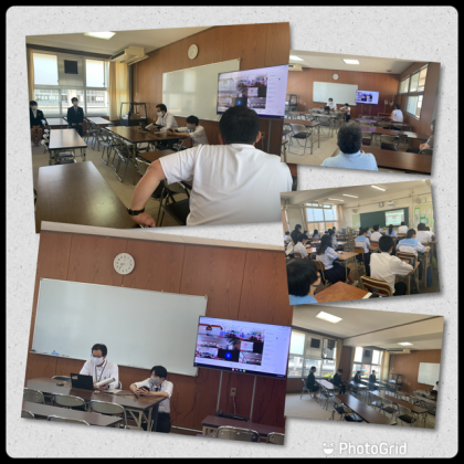 新型コロナ感染拡大防止のため、通常の全校集会ではなくオンラインでの全校集会を行いました。
