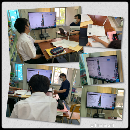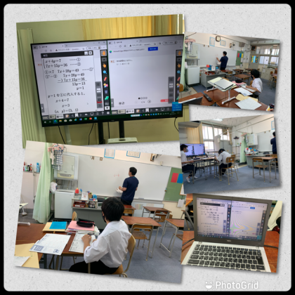 モニター画面を2つに分けて、習熟度別の授業になっています。
