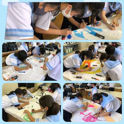 1年生は、先週1週間で学級旗の制作を進めました。まだ完成していないクラスもありますが、各クラス個性的ですばらしい旗が完成していっております。体育大会本番、この旗を先頭に堂々と行進する1年生を見るのがとても楽しみです!