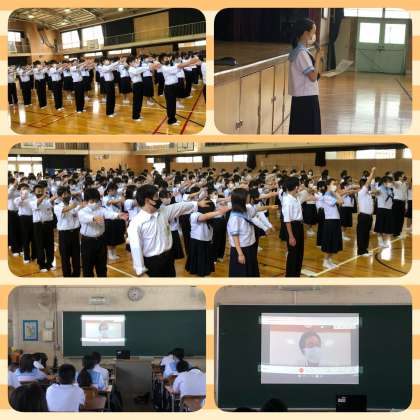 金曜日は学年集会、本日はMeetによる全校集会を行いました。金曜日の整列の様子を見ていると、4月に比べ集団行動のレベルが上がったなと感じました。体育の授業で取り組んでいる成果ですね。こちらも体育大会で発揮してほしいですね。