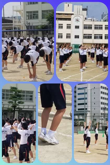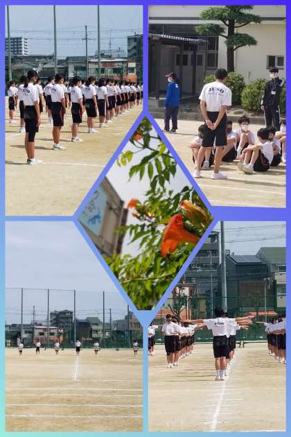 2年生の学年練習では、学級の班単位で脚の高さ、腕の振り方、リズムなどを確認していました。その中心を担っているのは体育委員です。頼もしい限りです。