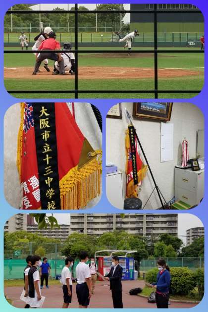 二年間校長室に立て掛けてあった野球部の優勝旗(令和元年度優勝)、この日大会本部に返却し、令和三年度優勝校へと渡りました。