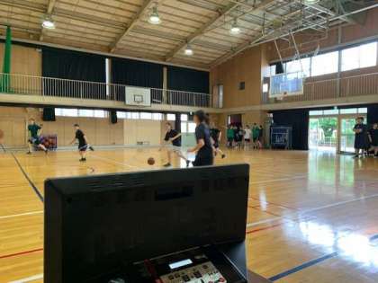 グランドでは野球部、体育館では女子バスケットボール部が活動中です。