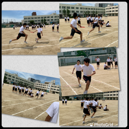 女子400mリレー、男子800mリレーのタイム計測を行いました。結果は連絡黒板に掲示されます。チームでタイムアップするための技術を考えましょう。きっと逆転する方法はあると思います。
