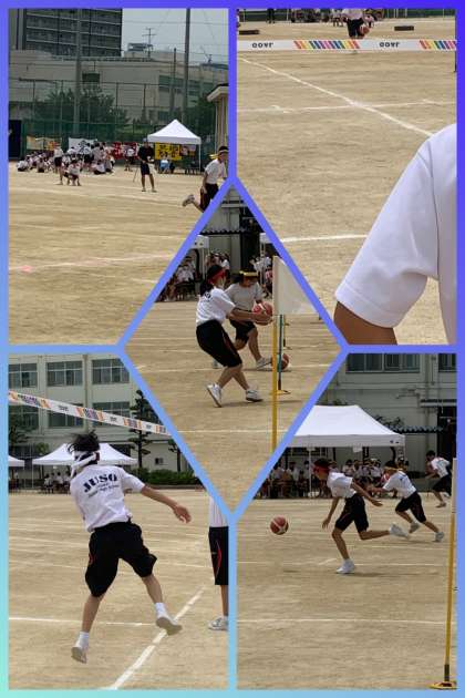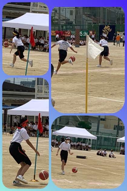 ドリブルでスピードを競います。バスケット部でしょうか、ボール操作が巧みです。