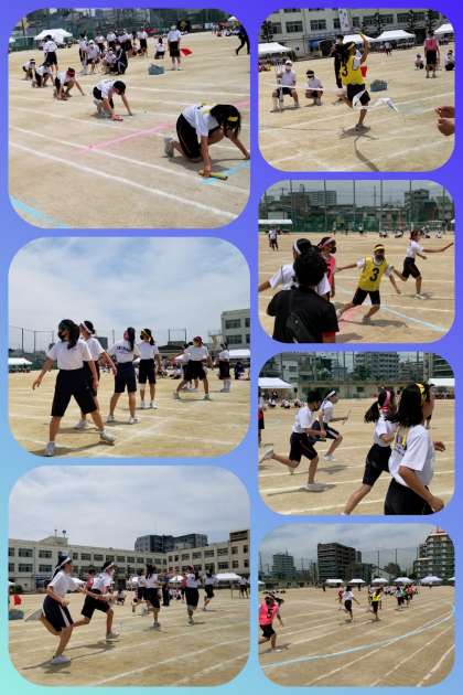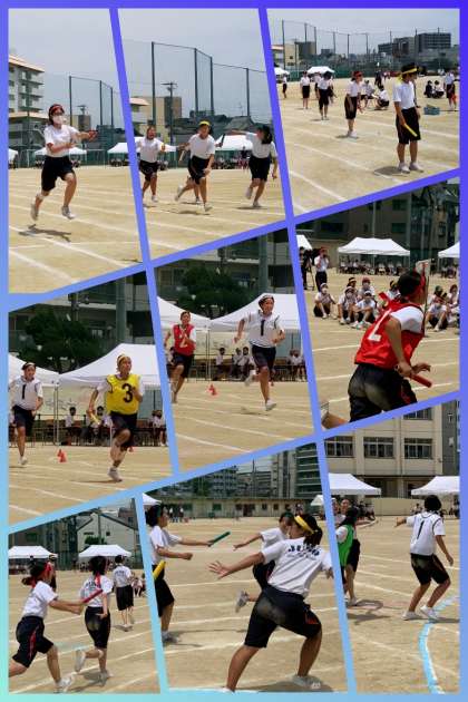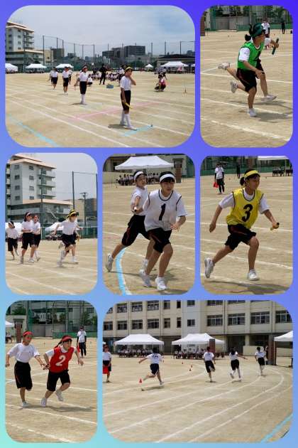 学級で走力に最もスピードのある4人がバトンをつなぎます。