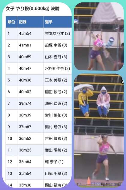 中学時代は砲丸でジュニアオリンピックへ出場。高校からやり投げへ転向しての成績です。本当に素晴らしい。