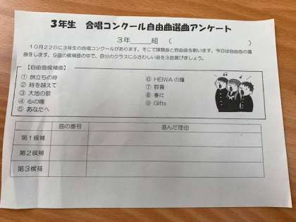 3年生 自由曲選曲アンケート