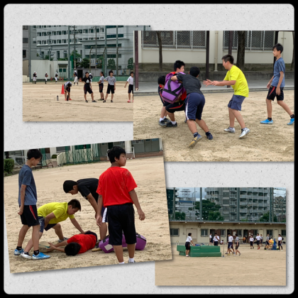 昨晩雨の水溜りも昼前には引き、グランドでの活動が可能となりました。