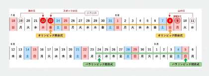 東京オリンピック競技大会・東京パラリンピック競技大会特別措置法等の一部を改正する法律(令和2年法律第68号)が施行されるたことに伴い、令和三年東京オリンピック競技大会・東京パラリンピック競技大会特別措置法(平成27年法律第33号)第32条第2項の規定に基づき、令和3年(2021年)における海の日、スポーツの日及び山の日については、上記の通りとなります。