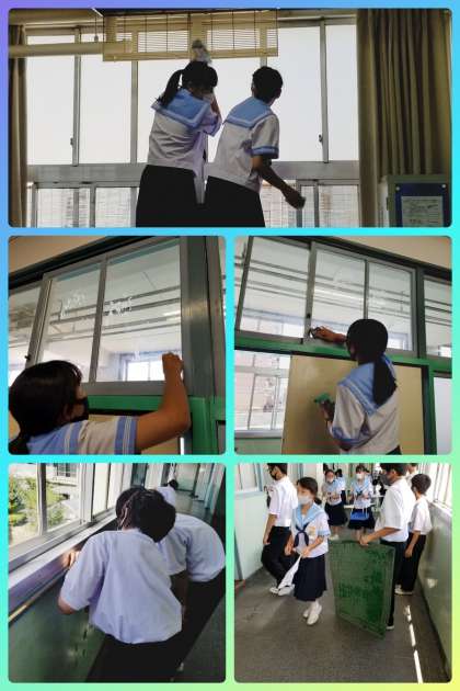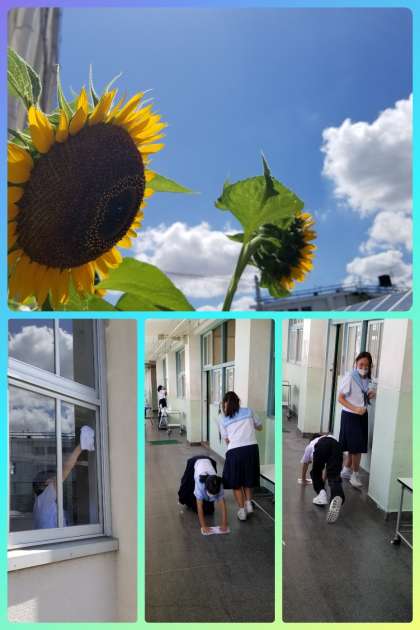 夏の太陽が差し込む南館、一年生が窓や壁、床などをいっしょうけん命に磨きあげていました。