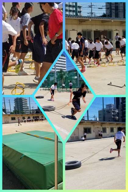 夏休みの初日、快晴のもと陸上部が熱気ムンムン活動に励んでいました。