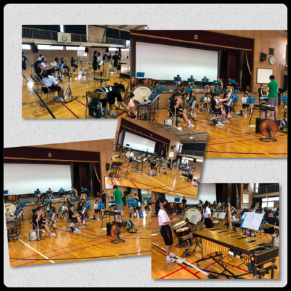 今日は音楽室から楽器を下ろして体育館で1日練習です。