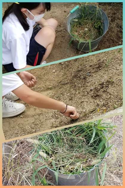野菜は収穫して家庭に持ち帰ったり、時には家庭科部と合同で調理したりします。