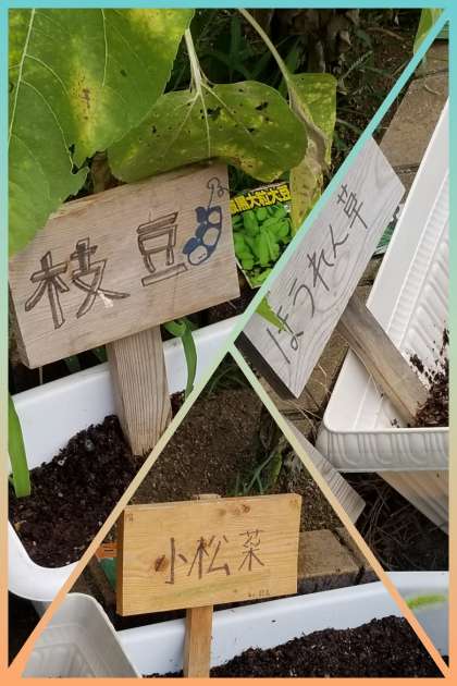 プランターには、枝豆と小松菜、ほうれん草などを育てています。
