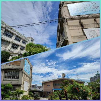午後二時半、学校上空に青空が広がっていました。気持ち良いですね。