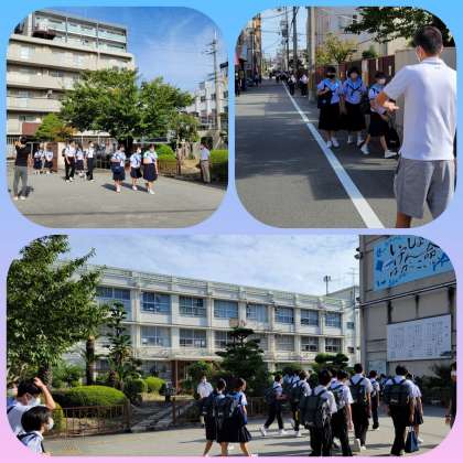 地域での傷害事件が発生しましたので、今朝も教員たちが地域への巡回を行い、子どもたちの安全登校を見守っています。