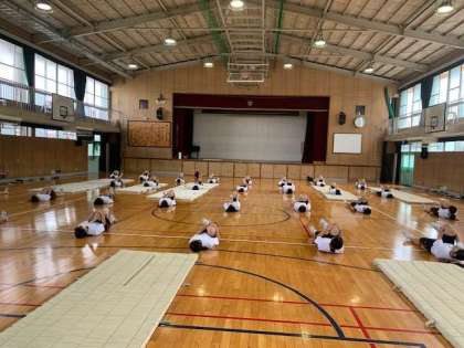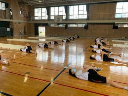 体育委員の絶妙なタイミングで色々なストレッチが行われています。