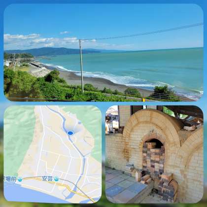 太平洋を望む、阪神タイガースのキャンプ地で有名な安芸。その近くで陶芸体験を行います。