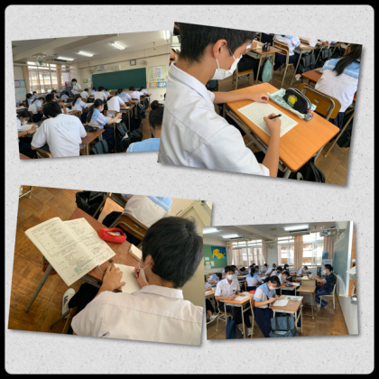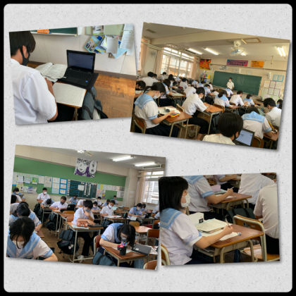 各クラスルームに貼り付けされている修学旅行アンケートに答えます。