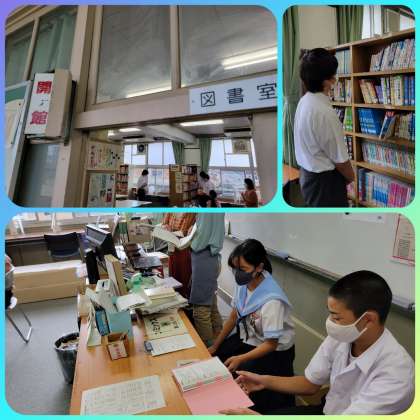 昼休みの図書室、今日は図書館補助員が来られています。探している本、今注目されている本、感動できる本、学力を高める本、進路を考えるための本など、補助員さんや元気アップコーディネーターが水曜日はいらっしゃるので、相談したら良いアドバイスがもらえるかも。