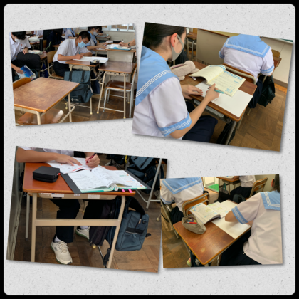 暗記物を見直したり、友達どうしで確認し合ったりしています。