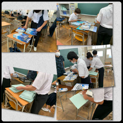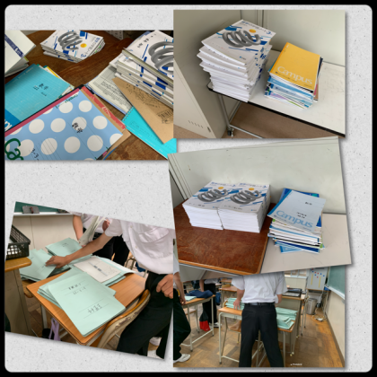 担当の教科係が提出物を回収、出席番号順に並べて担当の先生に提出です。