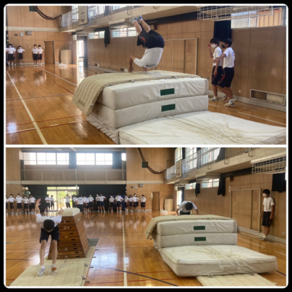 台上前転 かかえ込み跳び 前方倒立回転跳び