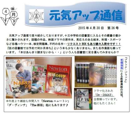 元気アップ通信4月30日号←クリックしてご覧ください。