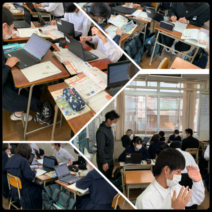 生徒同士が「教え合い」「助け合い」学習を要する場面ではグループ学習を多く取り入れています。