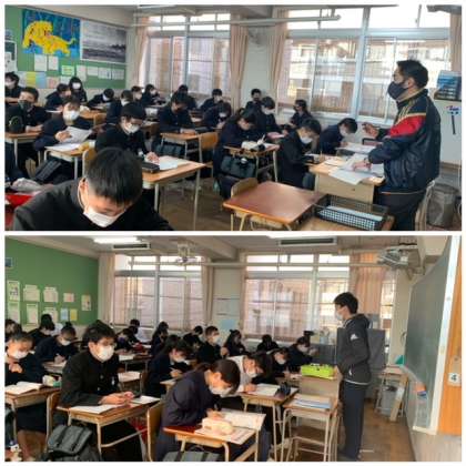 ?3年生朝学活の様子です。