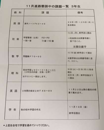 今週は進路懇談