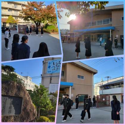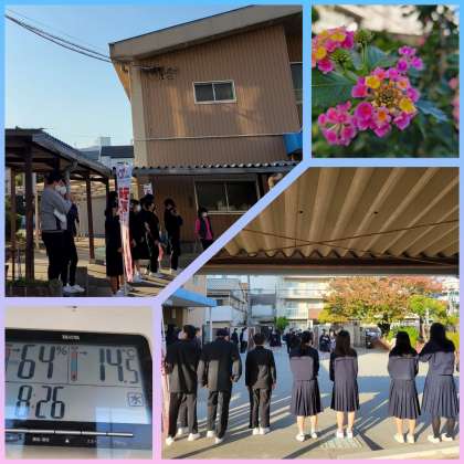 一日の寒暖差が大きくなる時期、今朝は14度、少し猫背ぎみになって登校する生徒も見られるようになってきました。