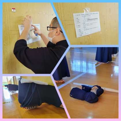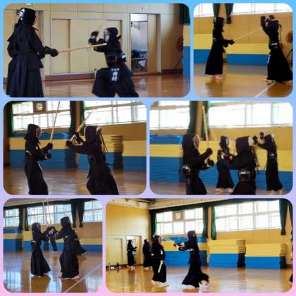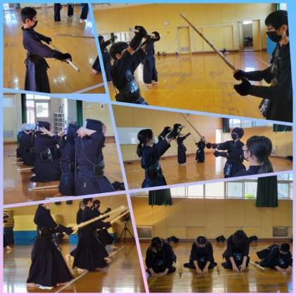 練習は素振りや基本打ち、応じ技など、基礎基本が反復されます。呼吸が上がっても弱音を吐く部員は一人もいません。