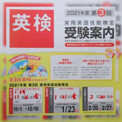 申し込みについては、1.3年生は11月26日(金)〆切です。2年生は全員受験です。