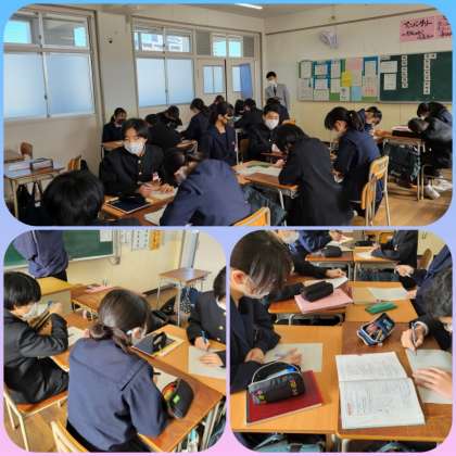 以前習った学習の力が必要になっています。二年生も来週から期末テストです。みんな集中して取り組んでいます。