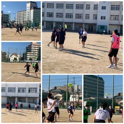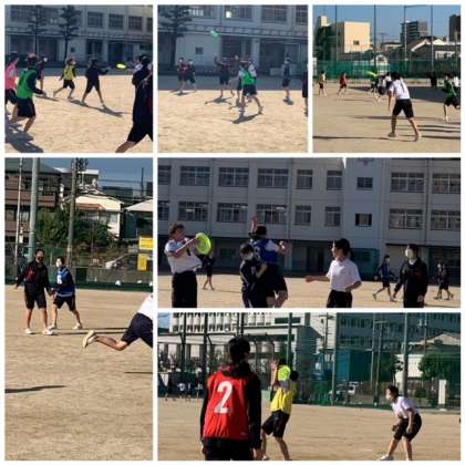 バスケットボールとアメリカンフットボールを合わせた様な競技で、フライングディスク(フリスビー)を使います。