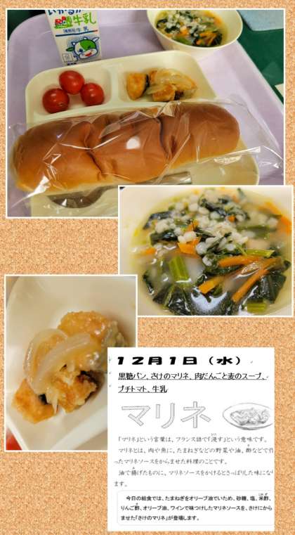 今日は『さけのマリネ』、お魚が苦手な生徒でも美味しくいただける調理です。