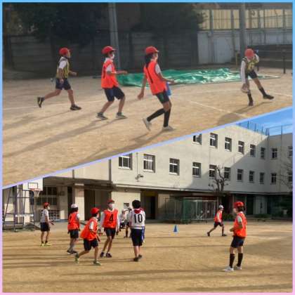 体育科教員は、タグラグビーを行いました。ラグビーで用いられるタックルをより安全な「タグ」に置き換えた、より親しみやすい簡易型フットボールです。