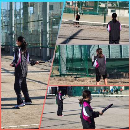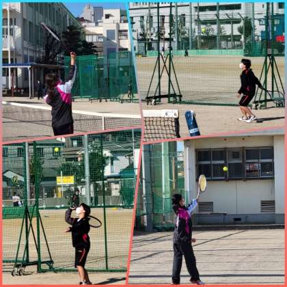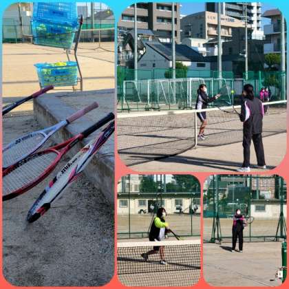 テニス部は明日の初心者大会に向けて練習に励んでいます。先生の指示でシングルス、ダブルスに分かれコートを駆け回っていましす。