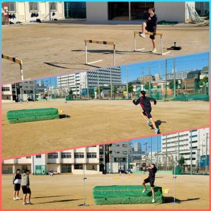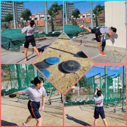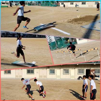ハードル、高跳び、短距離、砲丸投げ、円盤投げなど、安全対策をとりながら大きな目標に向けて練習に励んでいます。