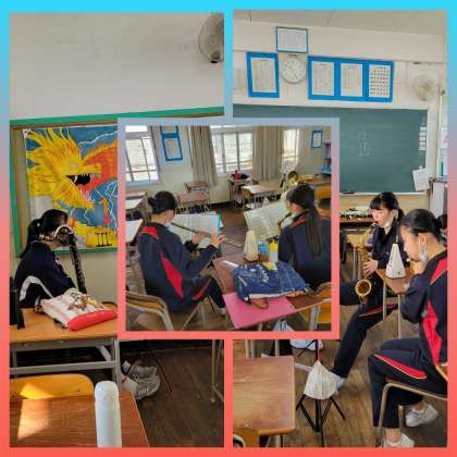吹奏楽部は、南館校舎各階教室に分かれ練習を行います。部活指導員等が不在の教室でも、パートリーダーが中心になり集中しています。
