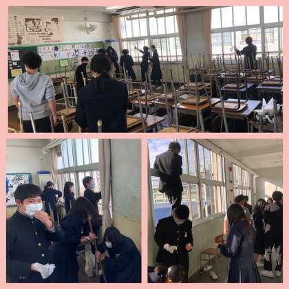 大掃除では、みんなが想像以上にまじめに細かいところまで取り組んでくれたおかげで、今年の汚れをきれいにすることができました。学年集会では、チャイム着席などがんばりを表彰するとともに、冬休みをむかえるにあたっての注意点を真剣な様子できくことができました。