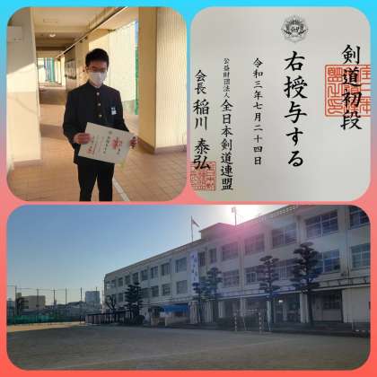 終業式に先だって、剣道初段を取得した生徒を表彰伝達を行いました。