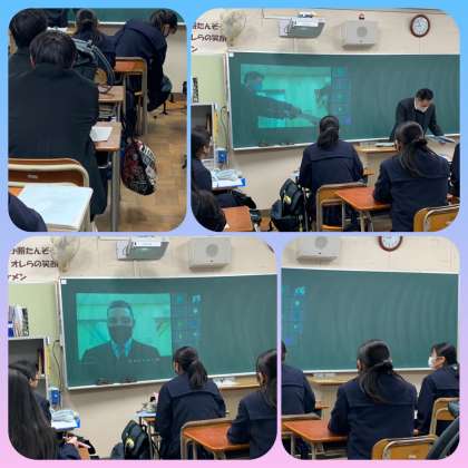 コロナ禍、三学期も放送とオンラインで始業式を行いました。