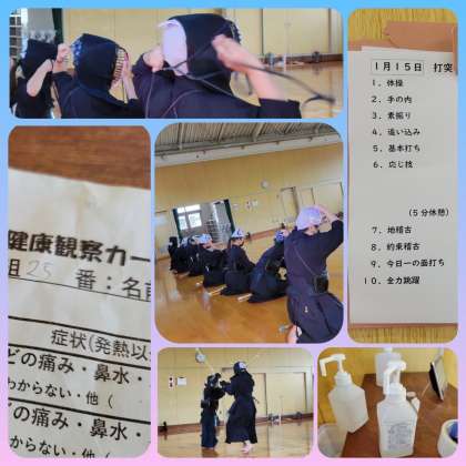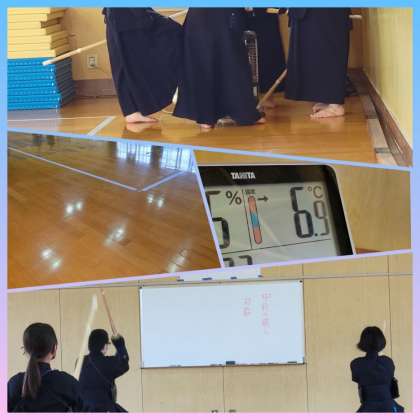 気温6度。冷たい床に裸足で練習に臨みますが、その冷たさにストーブを取り囲み足裏を温める部員たち。