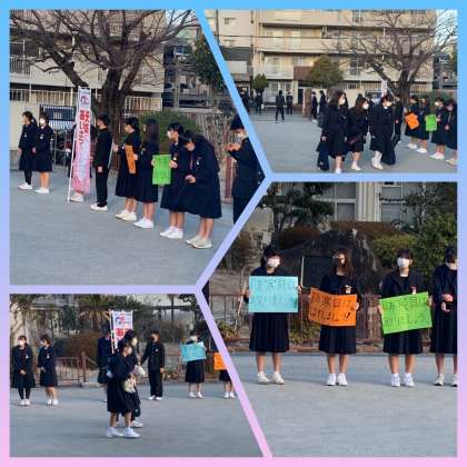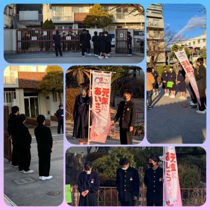 寒い朝、布団からも出たくないのがこの時期の子どもたちの本音だと思います。登校もポケットに手を入れ、背中が丸まっている生徒も多くなります。しかしそんな中にあっても、生活委員は朝早くから校門に立ってあいさつ運動に取り組みます。朝の校門は日陰も多く寒いですよね。本当にご苦労様です。