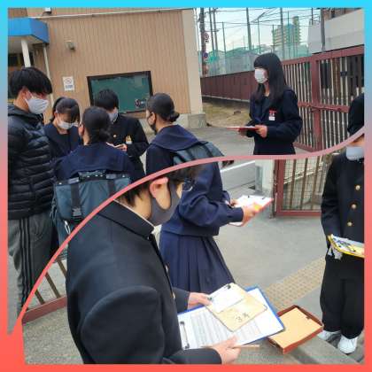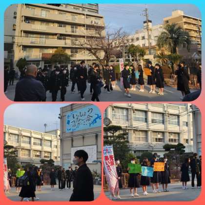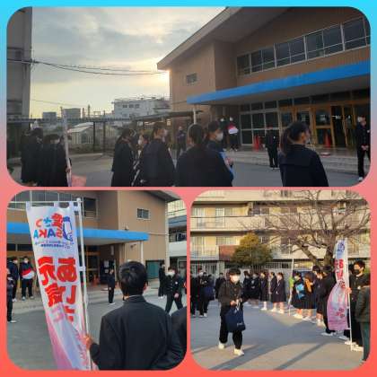 今日は3組生徒たちがあいさつ運動で登校生徒を迎え入れます。