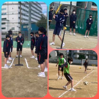 T-BALLのベースボール型とサッカーのゴール型で、ゲーム中心に生徒たちが運営や道具準備を行っています。