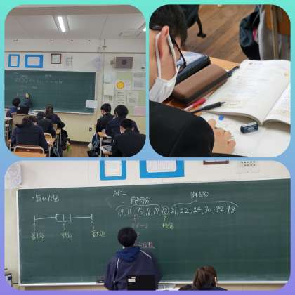 今回は、「四分位範囲」や「箱ひげ図」について、学びました。